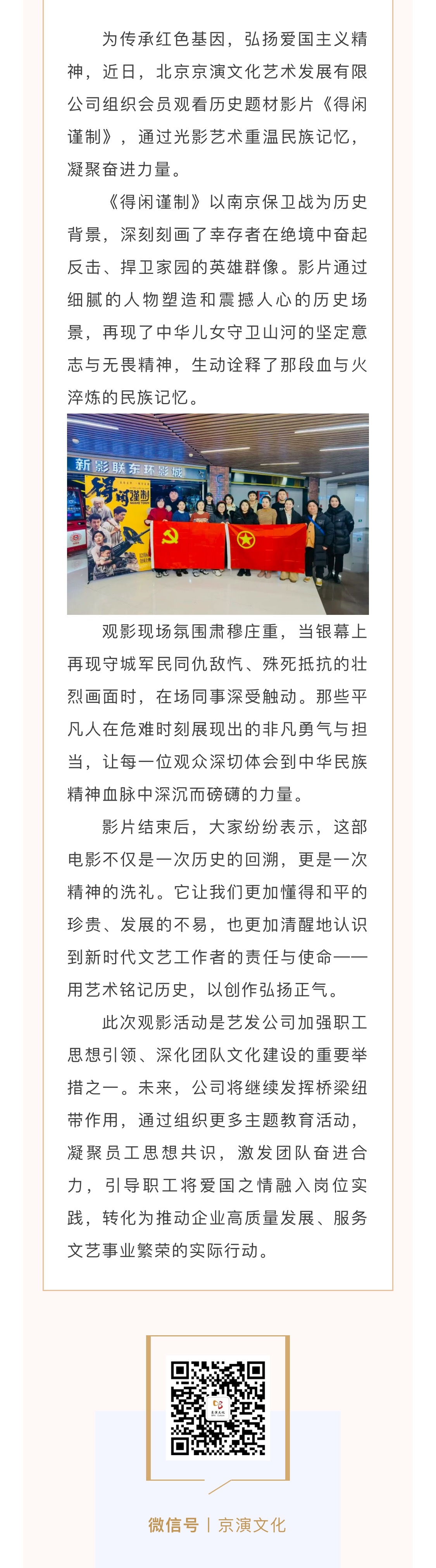 铭记历史·珍爱和平——北京京演文化艺术发展有限公司组织开展主题观影活动